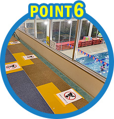 しっかりと! - 指導中でもコーチはマスクを着用しています。入館時の検温や消毒、更衣室の定員制限など様々な取り組みを実施しています。